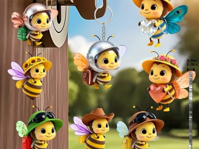 2D Plat - Set van 8 Platte Acryl Bijen Sleutelhangers met Charmante Originele Designs, Perfect voor Boheemse Decoratie. Deze Veelzijdige Decoraties zijn Ideaal voor Handtassen, Auto Accessoires, Sleutels, Rugzakken, en zijn Geweldige Cadeaus voor Elke Feestdag